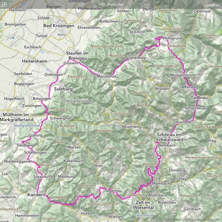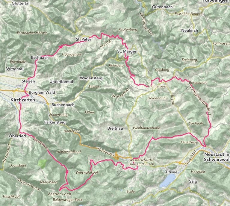 Die Tour startet in Stegen/Dreisamtal und führt auf in den Hochschwarzwald bis Titisee.