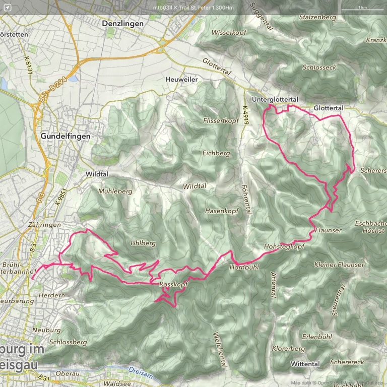 Die Tour startet in Freiburg und führt über den K-Trail und dann ins Glottertal.
